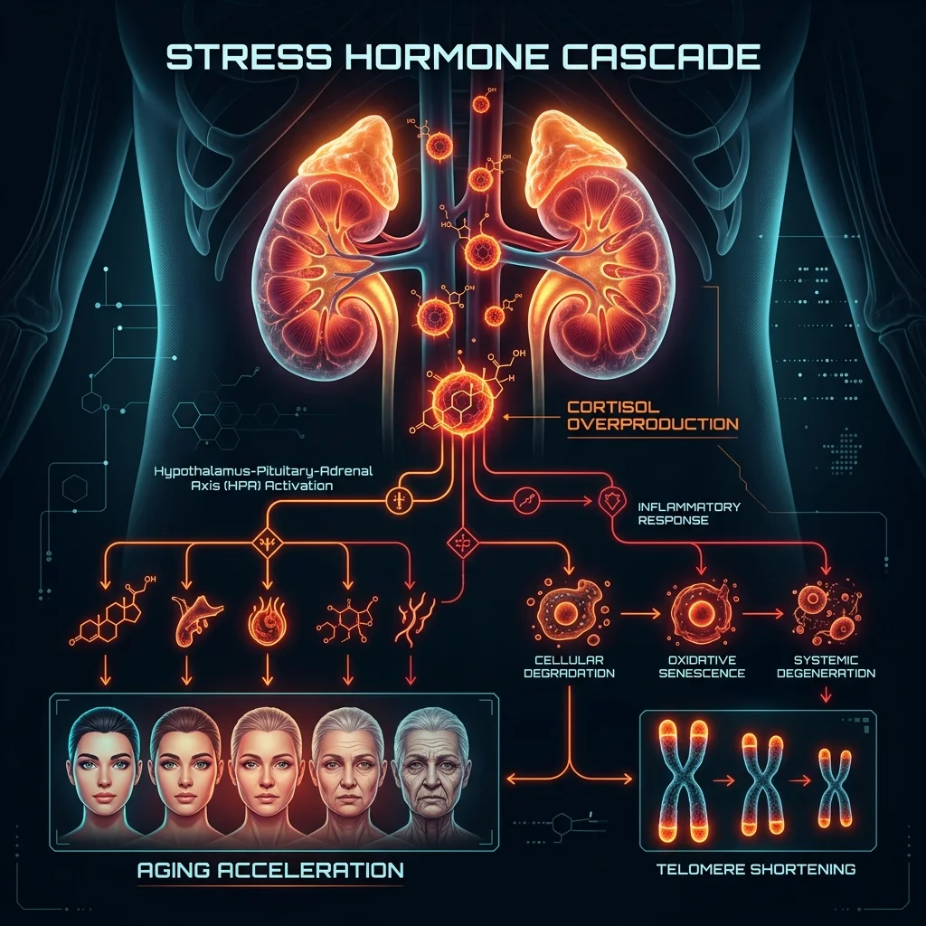 Cortisol is essential for survival — but chronically elevated, it accelerates nearly every biological aging pathway. Understanding the cortisol-aging connection reveals some of the most actionable longevity interventions available.